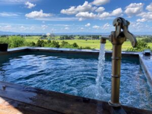 水風呂の水は天然湧き水のかけ流しで2つあり、飲用も可能な水質で冷たい時には12℃ほどになります。
